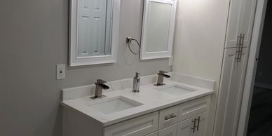 The old bathroom in this home was not efficient. The homeowner needed shelves and storage, and wanted a brigheter space. We accomplished both in this remodel!
